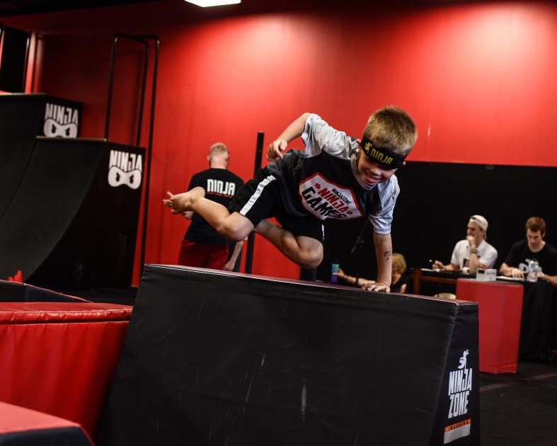 NinjaZone is a fusion of obstacle course training, gymnastics, parkour, and character building. These programs are the foundation of whole-body movement and the mind-body connection. A progressive level system evaluates and advances children in their skill and knowledge of core values as described in the NinjaZone creed. Children build strength, agility, and learn at their own pace.